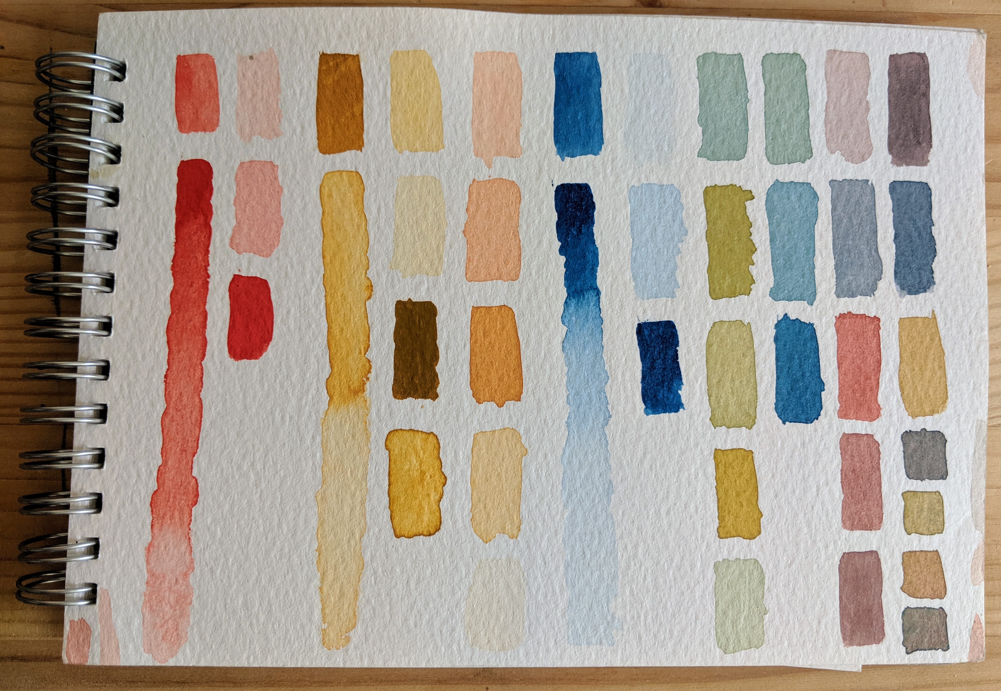 Fast forward 8 years, and I keep seeing beautiful watercolour paintings on my Instagram feed. Gorgeous freehand flowers, striking landscapes and delicate patterns. Around the same time a family friend was getting rid of some old art supplies, and in the bundle happened to be some watercolour paper and brushes. Ever hopeful, I said that I would love to take it. It stayed under my bed for a good while until one day during exams, I was feeling particularly stressed and decided to calm myself down by browsing a lovely art shop in Cambridge. I found myself standing in front of the watercolour pans, looking at all the colours. There are so many brands, and tones, and you have to learn the lingo – half pan, full pan. I didn’t even know what gouache was! I asked the shop clerk for some help and they suggested buying just three pans, one of each primary colour. I told him I had some experience blending oils, so using just three colours would help me develop tone and understand watercolours a bit better. Leaving the shop with three little pans of pigment, I was excited.