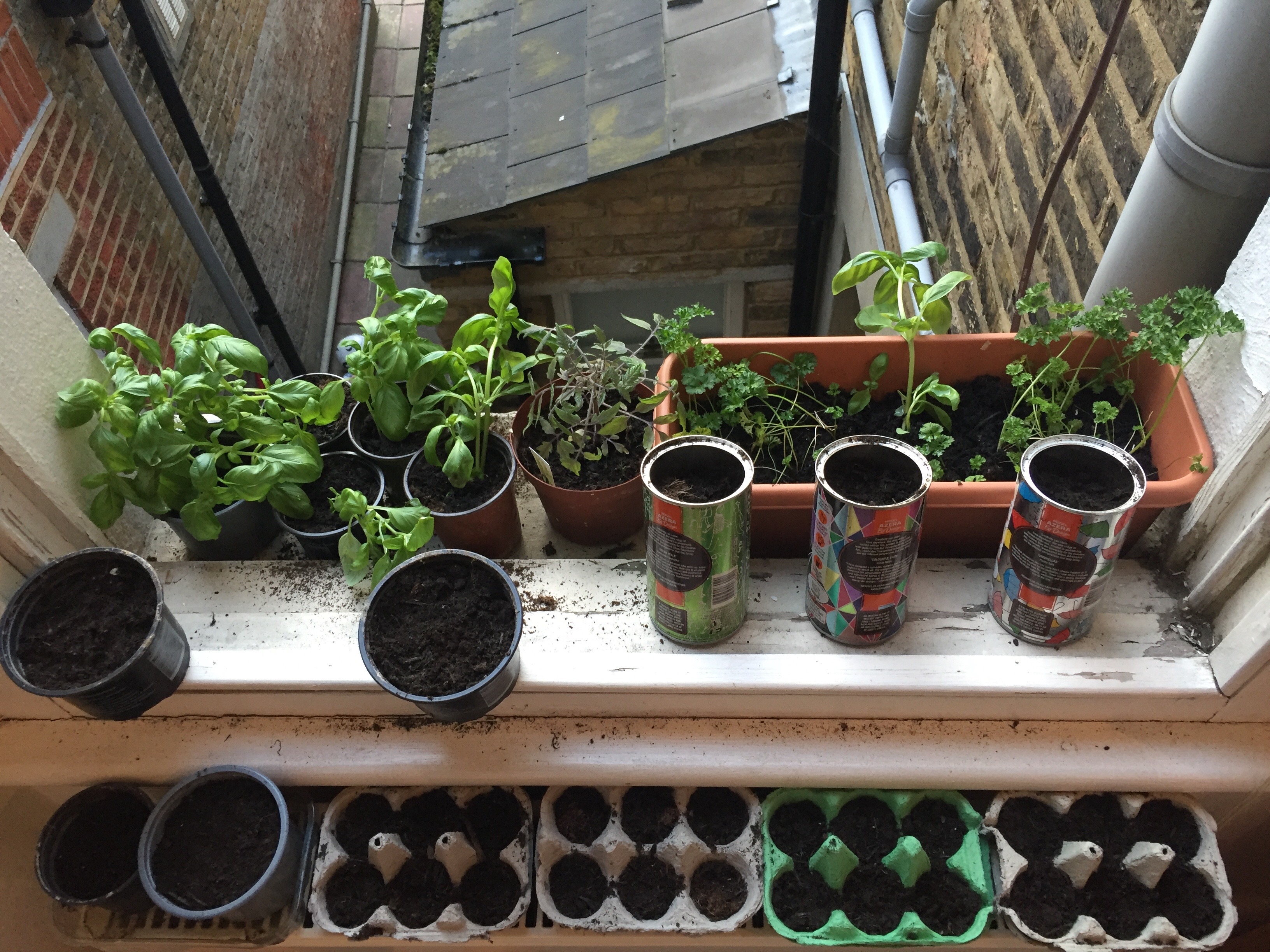 The germination process was THE BEST. Every morning I would wake up and check out what new things would be poking through, I think my favourites were the courgette and squash as they could do some SERIOUS amounts of growth over the day/night. I freely admit I got way, way too caught up in this process… A reality/sanity check happened when I was leaning out my window merrily chatting to my plants and realised my neighbour was directly below… looking up at me… Pretty sure they think I’m nuts now. Hey ho, can’t blame them. I found old egg boxes were great for starting the germination process, as were old coffee tins. The only issue with the egg boxes was as they were small they couldn’t hold much water, so I had to really keep an eye on them. I have started to run out of things to hold seeds, which probably isn’t a bad thing especially as over the summer I’ll be away a lot so I’ll have to move my plant collection to a friend’s house. My little seeds are now in their teenage stage and I’m hoping they stay content and happy, with no issues. Although having said this, Terry however is being slightly difficult and has started to play the ‘I don’t like my leaves’ game, so I’m trying to nip that in the bud (ha ha).