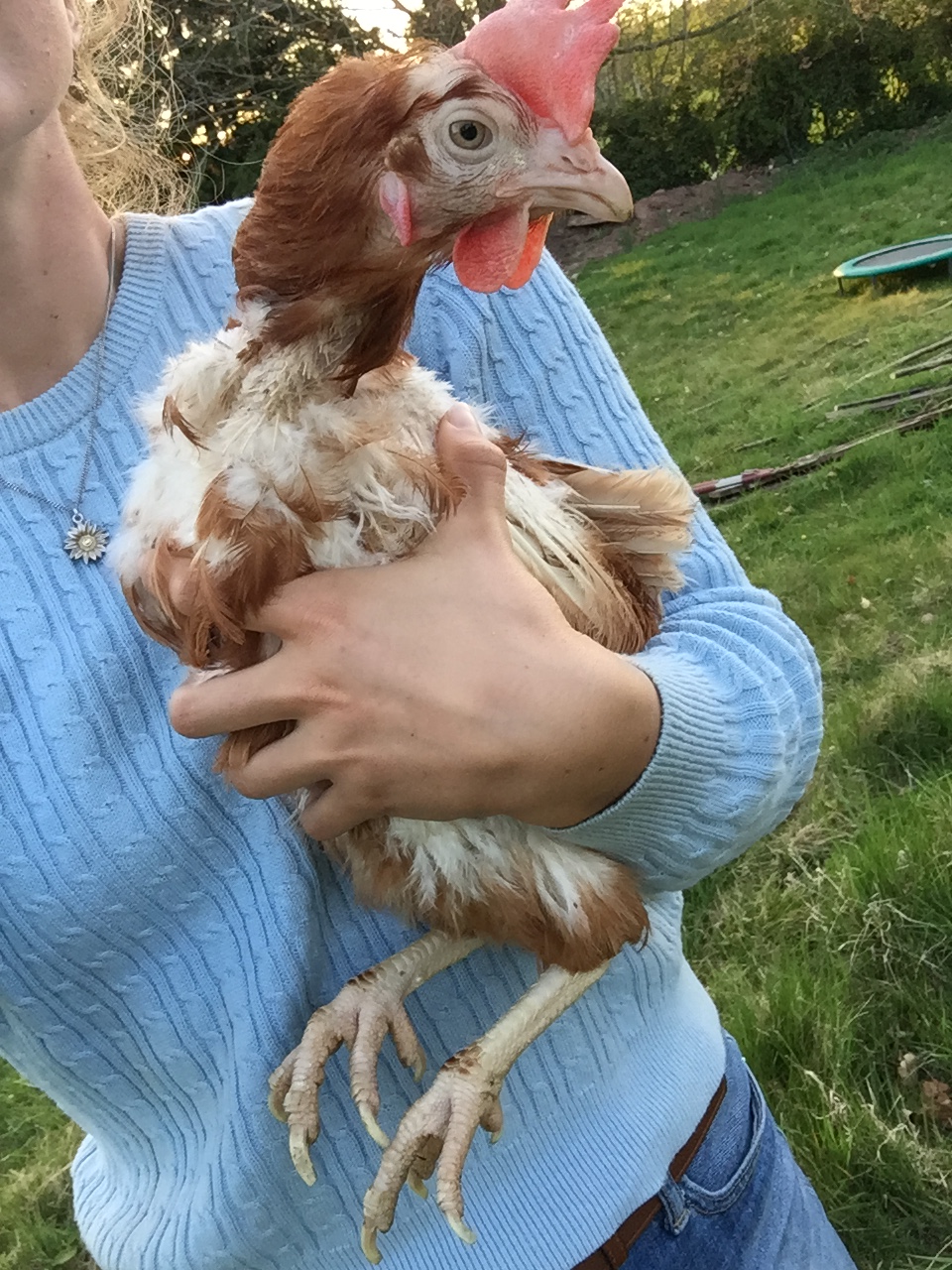 A few years ago, our very old hens started to get a little doddery and we realised we might need to start sourcing more hens or face being left hen-less. I started researching into rehoming hens rather than going for the traditionally adorable little hens I’d always had. I found a rehoming centre near my family home through the BHWT (British Hen Welfare Trust) and signed up to collect three hens. At this point I’d done a fair amount of research so understood my hens would arrive once an egg farm was clearing out their current hens and the charity would collect the hens and distribute them to new, responsible homes. I was also warned that my hens would be scared, lacking feathers, confused, unhappy and generally in a bad way – this sometimes resulting in a rather short life span once I’d rehomed them. The three hens I collected were terrified and confused by their new home once I’d brought them back. Having never seen grass, rain or other animals, they had a lot to learn in a short adjustment period… However, despite a lot of initial hesitation, they soon began to explore and learn to enjoy their new home. Watching the rather scrappy trio, who probably had enough feathers for one hen between them, find their bearings and begin to understand that this new world was good and tasty was hilarious but also sad, as obviously these hens had been forced to live, in my opinion, a completely unnatural and cruel existence. As they began to find their feet (both literally and metaphorically) they grew back their feathers and gained so much confidence that they often would pick fights with the dogs – the dogs generally always running away confused and displaced!